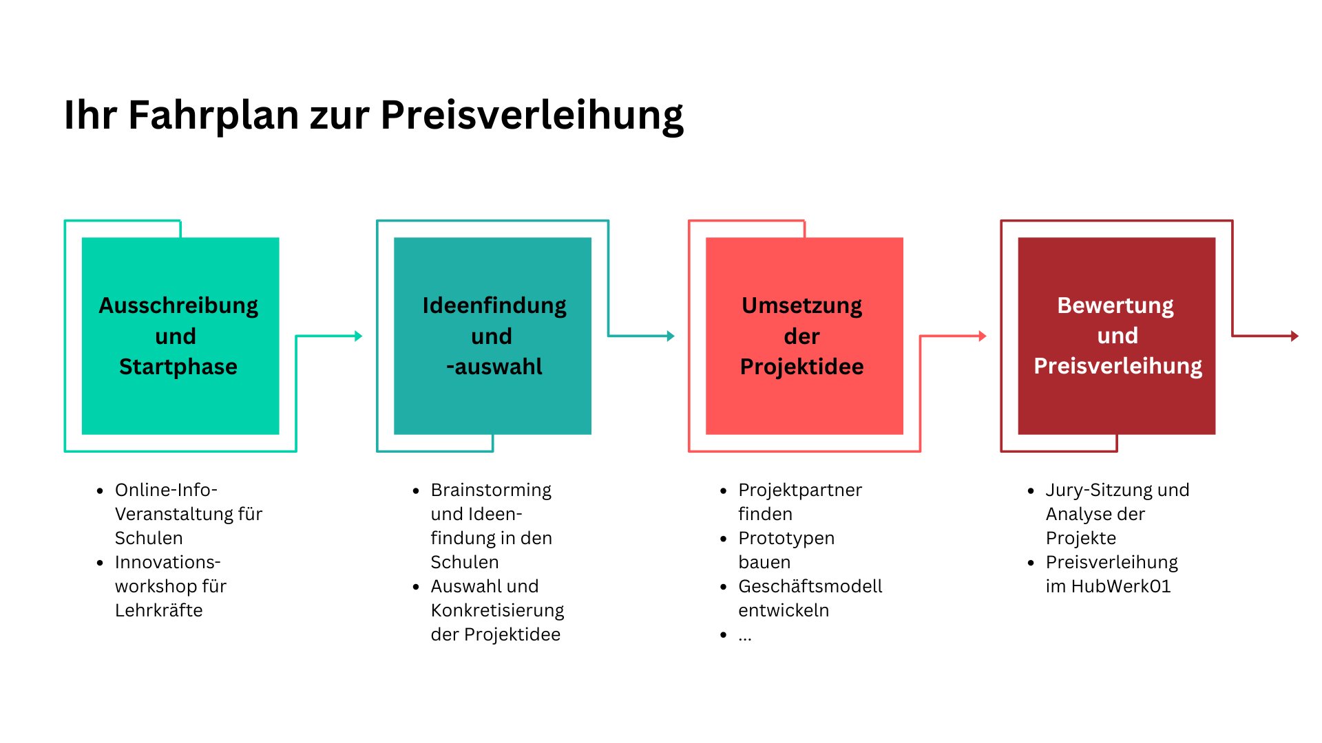 Diese Aufgaben werden von interessierten Schulklassen aufgenommen, die daraufhin innovative Konzepte und Prototypen entwickeln.