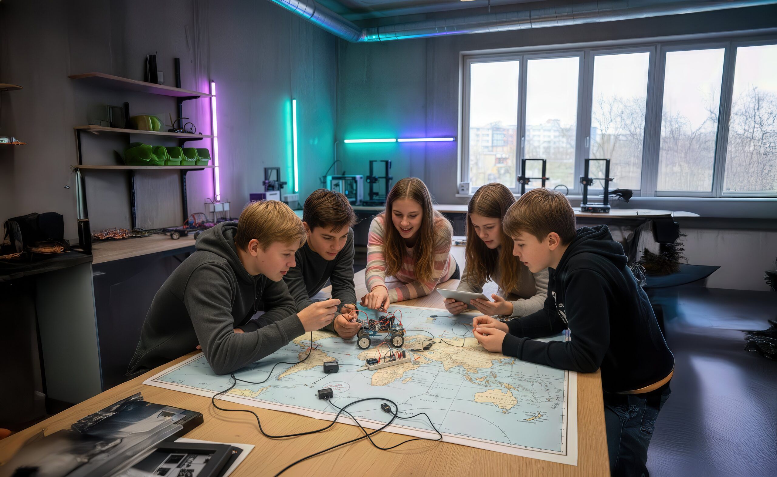 Teilnehmende Schülergruppen können dort kostenfrei moderne Werkstatt- und Laborausstattung sowie das MINT-Knowhow nutzen – von 3D-Druck über Lasercutting bis hin zu Elektronik-Arbeitsplätzen.